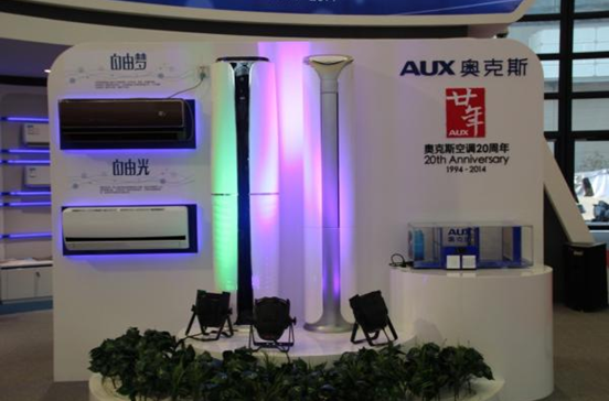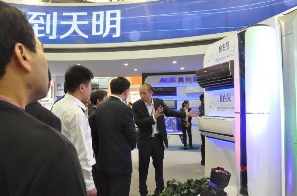 (奥克斯展出的LV“自由梦”空调新品成为展会上的一抹亮色)