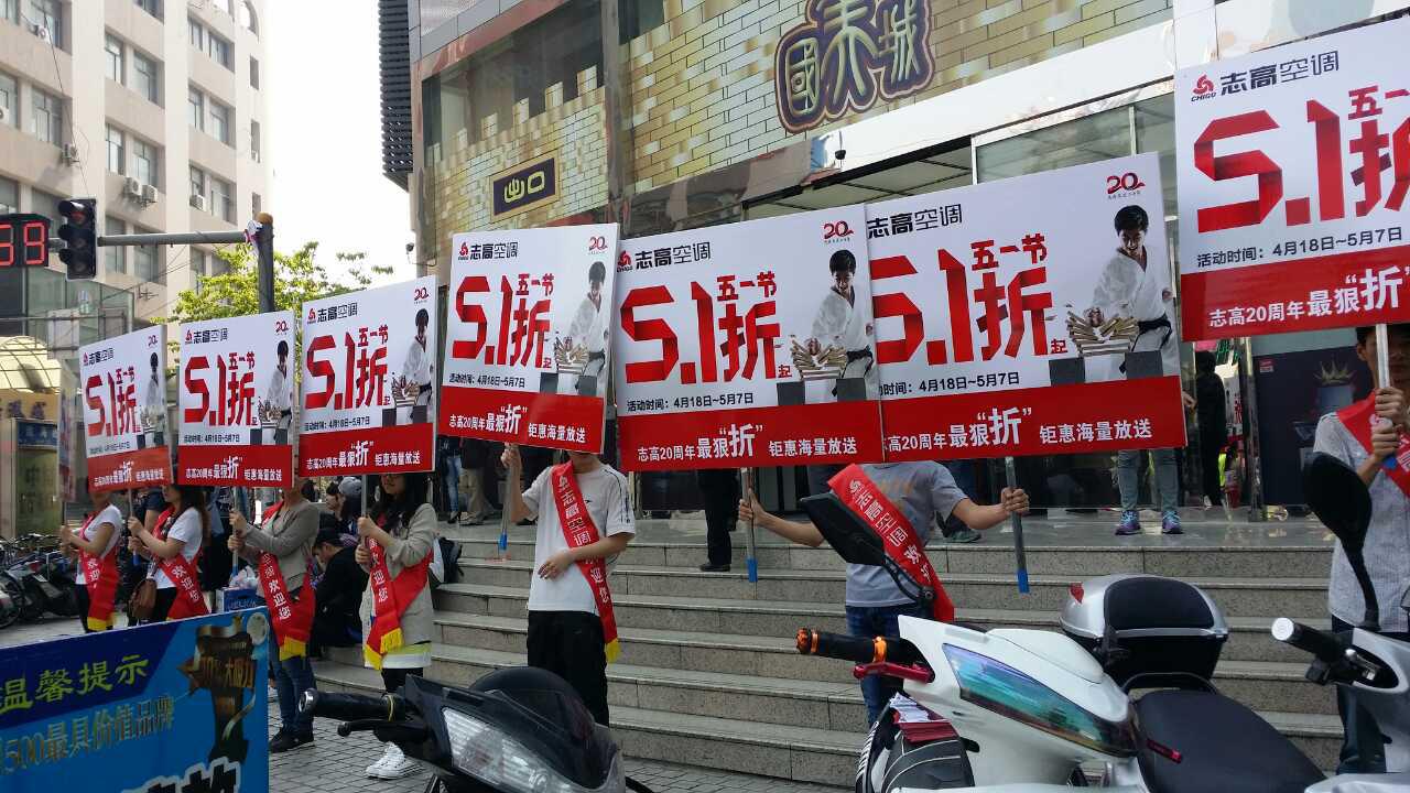 4月28日—5月3日,志高空调在全国范围内举行“双5.1”狂欢活动——即五一期间,特指产品或特别套餐的挂机可享受5.1折优惠,变频新品的市场占比超过35%成为最大亮点。