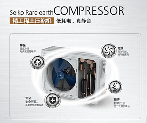 新一代4极24槽压缩机,超强制冷制热,运行更平稳,噪音更微细,风力更充沛。