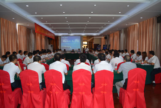 7月21日新科空调多功能厅座无虚席,集团董事长吴清平、集团总经理郭文峰、新科空调制造总经理舒乐华、新科空调营销总经理潘克庆、营销总监程宏文、厉超和来自全国各产管中心销售经理召开2014冷年总结、2015冷年规划会议。