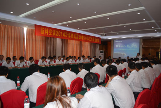 新科空调营销总经理潘克庆回顾2014年工作,总结得失。做2015年营销工作规划,部署2015年销售目标同比再增长100%的销售任务;