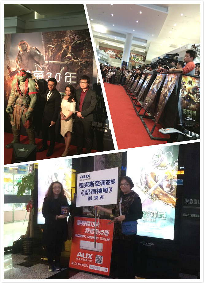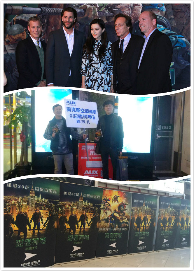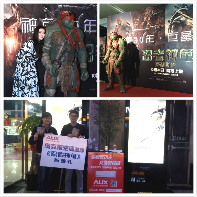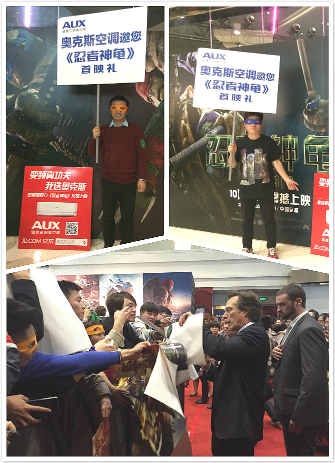 10月26日,好莱坞真人特效版《忍者神龟:变种时代》在北京举办了盛大的新闻发布会及首映礼。主演梅根·福克斯、威廉·菲德内尔等主创集体带面罩亮相新闻发布会。在晚上举办的首映礼活动中,空调王者奥克斯邀请 “全球龟粉召集令——说出你想去首映礼的理由”微博活动获奖的网友共同见证这一星光熠熠的盛典,倾情助阵影片首映。