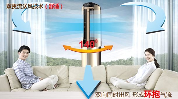 无论是炎热的夏季还是寒冷的冬天,回到家,立开空调,即刻享受超强凉爽和包裹全身的温暖舒适。奥克斯空调L系列精品柜机领先行业首创双贯流送风技术,送风更广更快更舒适!140度超大广角送风,送风距离可达12米,超大循环风量,迅速将室内空气吸入置换成用户需要的冷、暖风,制冷制热速度更快;鱼鳍式上下导风叶,暖从地面起,冷从屋顶降,超大制热量,超快暖房速度,将舒适生活进行到底!