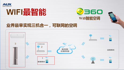 未来空调长啥样?它又无三头六臂不知道,但未来空调看智能一定是靠谱的!奥克斯空调L系列柜机精品是目前市面上将智能化演绎的最淋漓尽致的空调。它搭载智能wifi技术,是中国唯一与互联网巨头360合作的智能空调,也是中国最早实现三机合一,可联网的智能化空调。用户还可通过手机在任何地方实远程遥控,指挥家中空调;人机对话功能,接收语音指令,实现人机互动;通过云端自动搜集用户空调的使用习惯和空调使用状况,故障自动上报。无论你在天涯还是海角,空调随你控,只要你愿意,甚至无需你动手,智能生活动动口,凉爽温暖随你享。