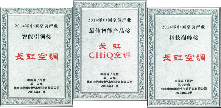 2014年10月,第七届中国空调产业年会,长虹空调又斩获三奖:引领科技、智能、潮流。