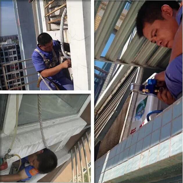 没有空调架可以借力,黄师傅只能踩在墙外10厘米宽的房檐上,整个身子几乎悬在半空;还有王师傅蹲在狭小的空间,为用户更换压缩机,这曾是我们采访报道过的一组镜头,石家庄自建中心空调维修团队演绎《蜘蛛侠之那些吊在窗外的日子》,如今看来的确令人感动,这也仅仅是长虹安装、维修记录的一幕,他们在为用户服务上,不马虎,天多热,楼再高,也敢服务。