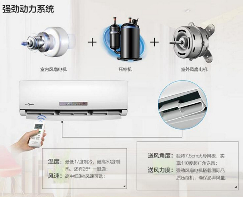 美的(Midea)KFR-26GW/WPAD3的独门绝活,就是它搭载的荣获得国家专利的高频速冷热技术。这一系列新品,采用高频启动技术,能够有效的缩短空调的开机时间,使空调高频率运行,快速的送出强劲的冷热风,让用户时刻都能享受舒适。