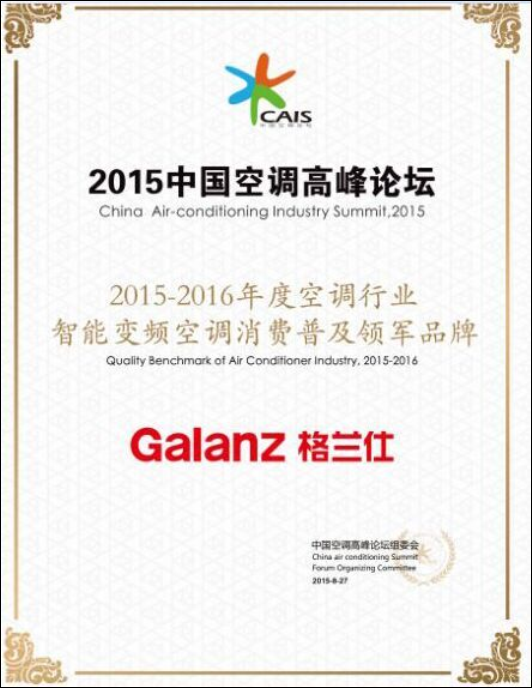 日前,格兰仕精品战略再结硕果,由中国家用电器协会、国家信息中心信息资源开发部指导,由中国家电网主办的2015中国空调行业高峰论坛上,格兰仕品牌得到权威行业专家的肯定,并荣获“2015-2016年度空调行业智能变频空调消费普及领军品牌”等多项殊荣,以表彰格兰仕在中国空调行业推动智能变频升级的突出贡献。