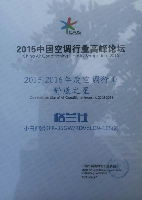 据悉,格兰仕品牌荣获“2015-2016年度空调行业智能变频空调消费普及领军品牌”,同时小白神器KFR-35GW/RDVdLD9-105(2)和普罗旺斯KFR-35GW/RZdi5E-150(1)分别获得“2015-2016年度空调行业舒适之星”、“2015-2016年度空调行业创新型号”殊荣,合共3项瞩目奖项。