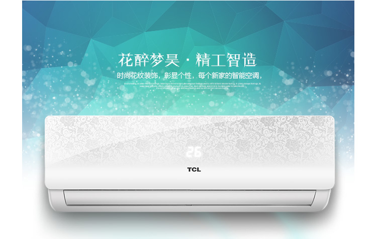 TCL花醉系列空调,智能WIFI控制,改变的不仅是温度。时尚花纹装饰,内置智能模仿,无需外置盒子,更省空间,无论在家还是外出,都能用智能手机一首控制家中空调,智能WIFI尽在掌握。