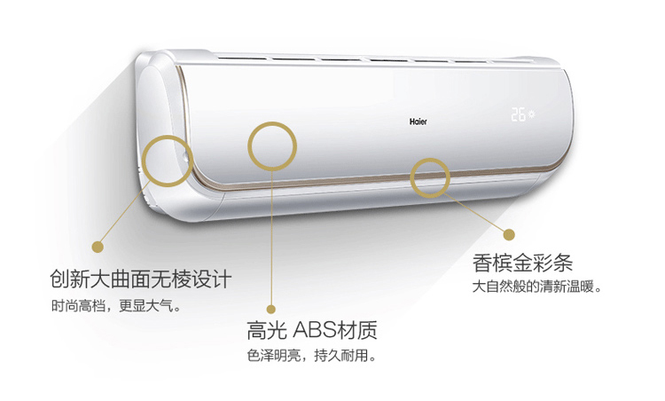 海尔玉铂系列变频空调,灵敏感知室内气温的细微变化,均匀控制,带来丝绸般柔和、舒适的恒温体验。细腻典雅的香槟金,为你的生活添加一抹明亮与温暖。