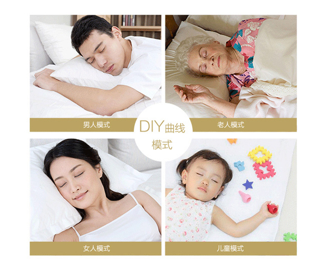 第四代宽带无氟变频技术大升级,一分钟速冷,三分钟速热,高效节能,从此舒爽不必苦苦等待。一键PMV系统,根据不同人群体质特征及个人偏好与习惯,研发出4种不同人群睡眠曲线+1一种DIY曲线,让你安心舒睡每一晚。
