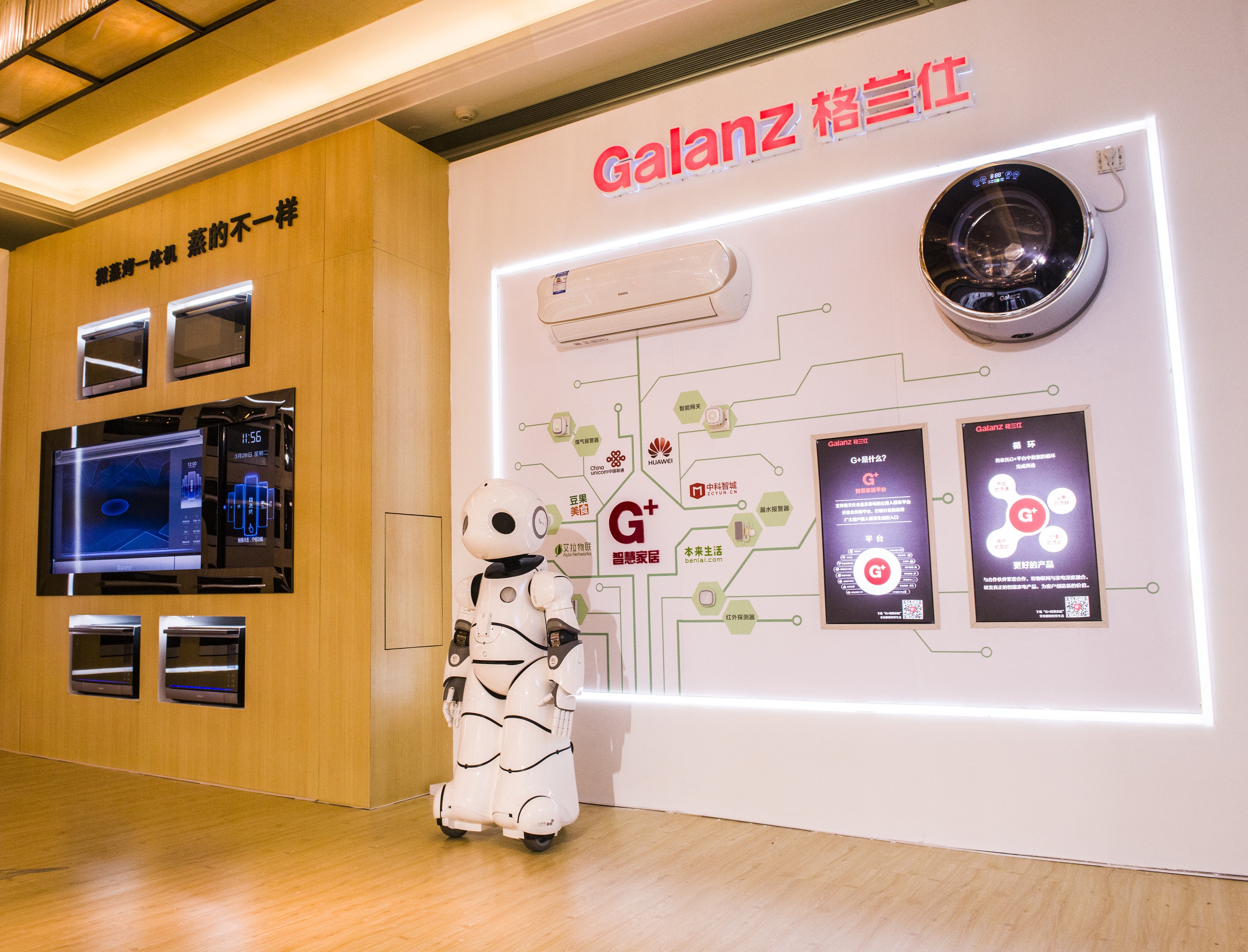 在2017格兰仕328中国市场年会上,格兰仕和众多“G+智慧家居”生态圈伙伴签订战略合作协议。目前,通过“G+智慧家居”平台,格兰仕已经实现了整套智能家电互联互通。包括荣获德国IFA节能环保技术金奖的Q6微蒸烤一体机、ICE WORLD互联网生态冰箱等颠覆传统想象的高智商高情商家电。通过“G+智慧家居”平台连接,立体展现出格兰仕如何通过科技让人们穿得健康、住得健康、吃得健康。