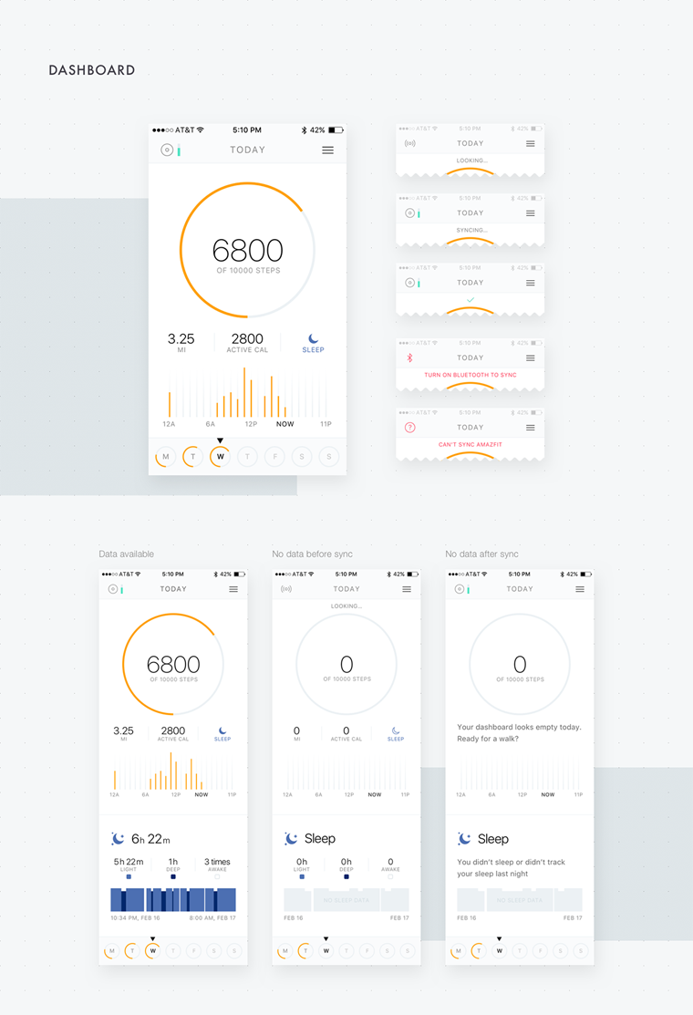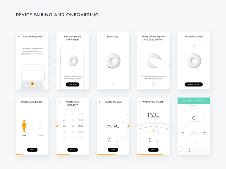 Amazfit除了出色的ui设计外,值得夸奖的还有其成熟的交互设计,通过软件与硬件的搭配使用,有助于我们建立健康的习惯,培养一个更积极和健康的生活方式。 Amazfit能够跟踪用户的行走步数,行驶距离,卡路里燃烧情况和睡眠质量。使用户随时把握自己的身体状况,通过这种方式及时的对运动计划作出调整,让用户充满活力与激情。