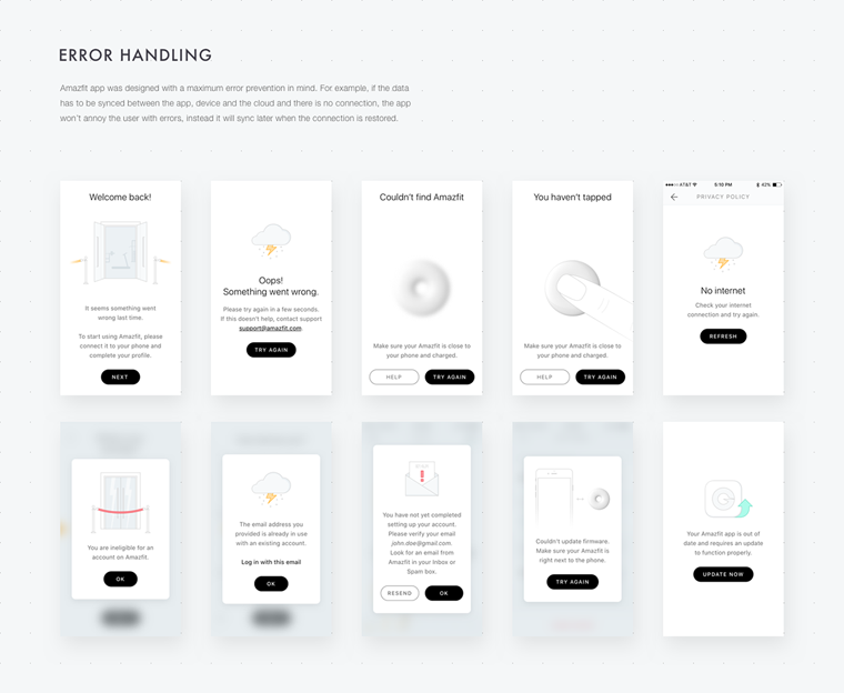Amazfit除了出色的ui设计外,值得夸奖的还有其成熟的交互设计,通过软件与硬件的搭配使用,有助于我们建立健康的习惯,培养一个更积极和健康的生活方式。 Amazfit能够跟踪用户的行走步数,行驶距离,卡路里燃烧情况和睡眠质量。使用户随时把握自己的身体状况,通过这种方式及时的对运动计划作出调整,让用户充满活力与激情。